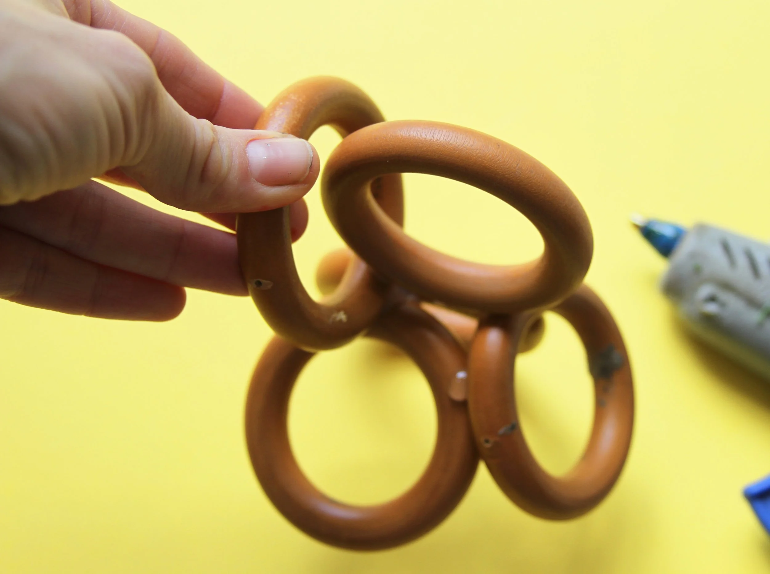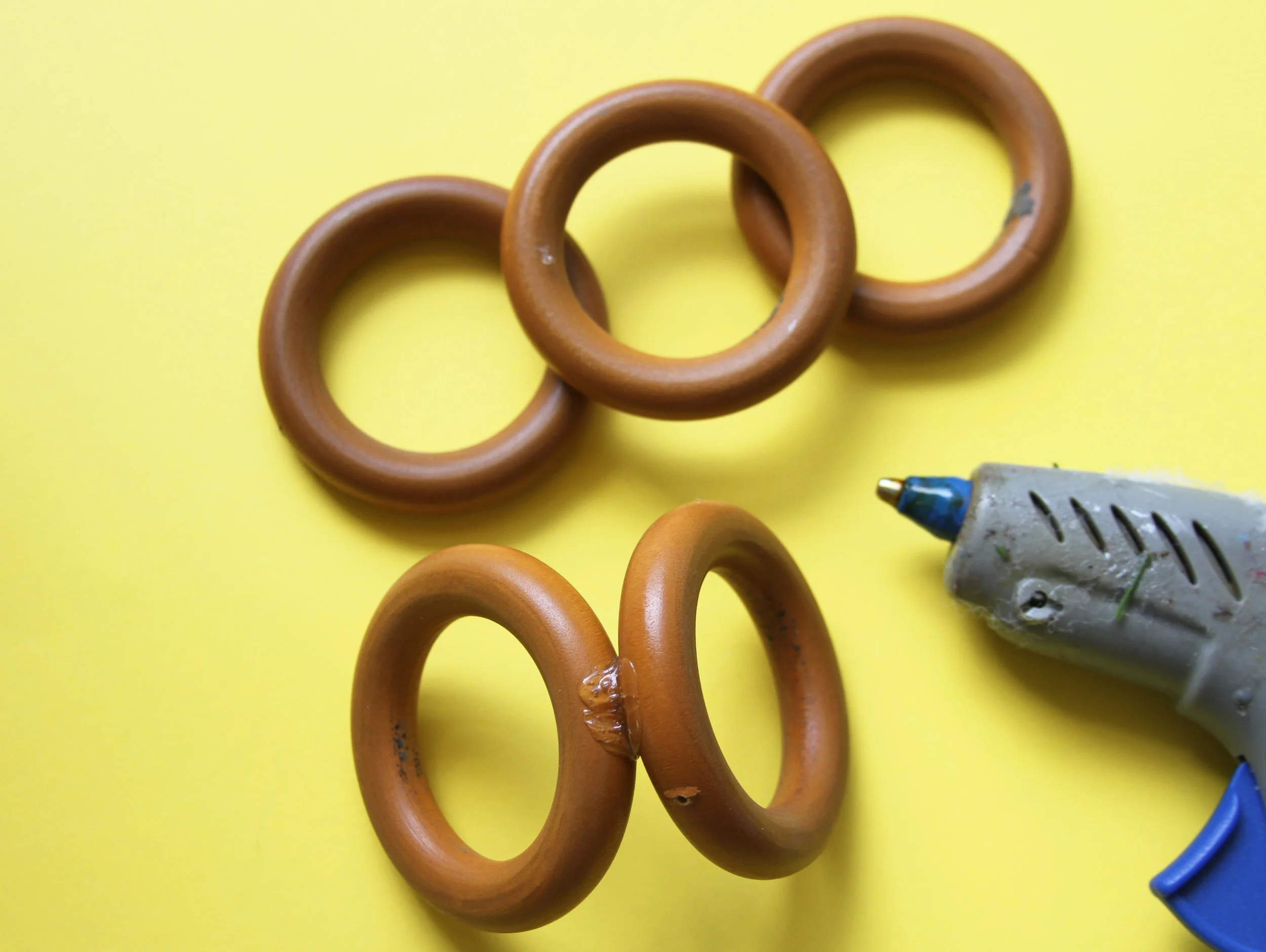 1.Glue the rings together one a a time. This takes a little patience as you need to hold the pieces together until the glue has dried.